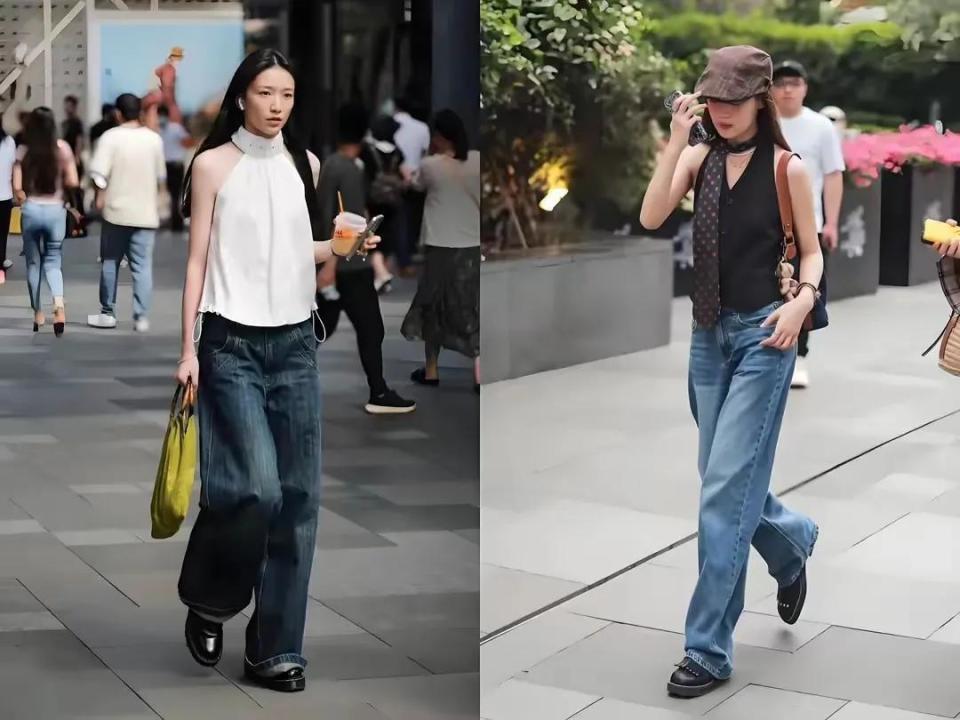 我们再选择衣服单品的时候,一定要避开容易起毛起球起褶皱的衣服款式,例如下面用黑色的背心,下半身选择一条挺阔有型的牛仔阔腿裤,脚上穿了黑色的乐福鞋,这一身穿衣打扮显得又飒又美。