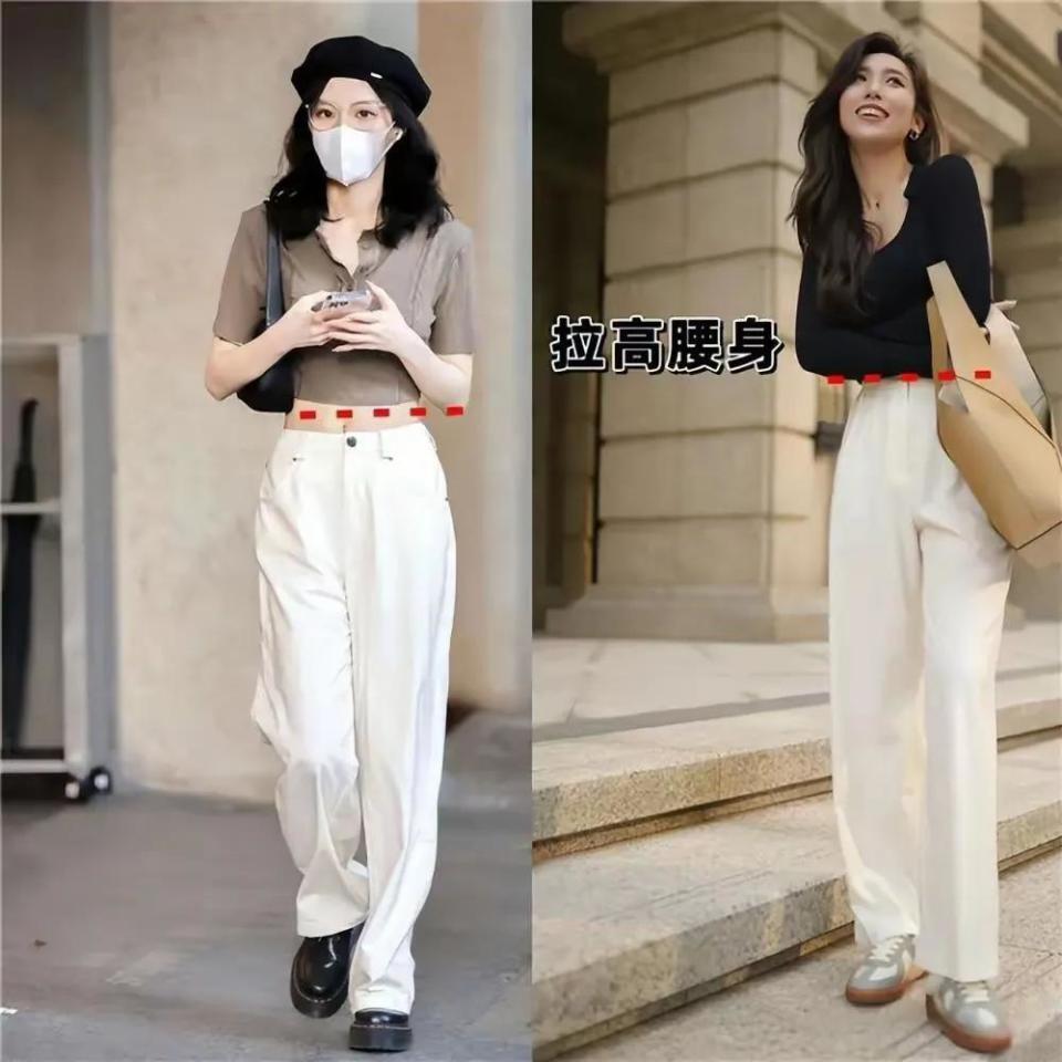 除了衣服颜色之外,衣服的面料也至关重要,咱们看下面这两条裤子,面料柔软,穿在身上有垂坠感,穿在身上之后,不光遮肉显瘦,还能提升气质。