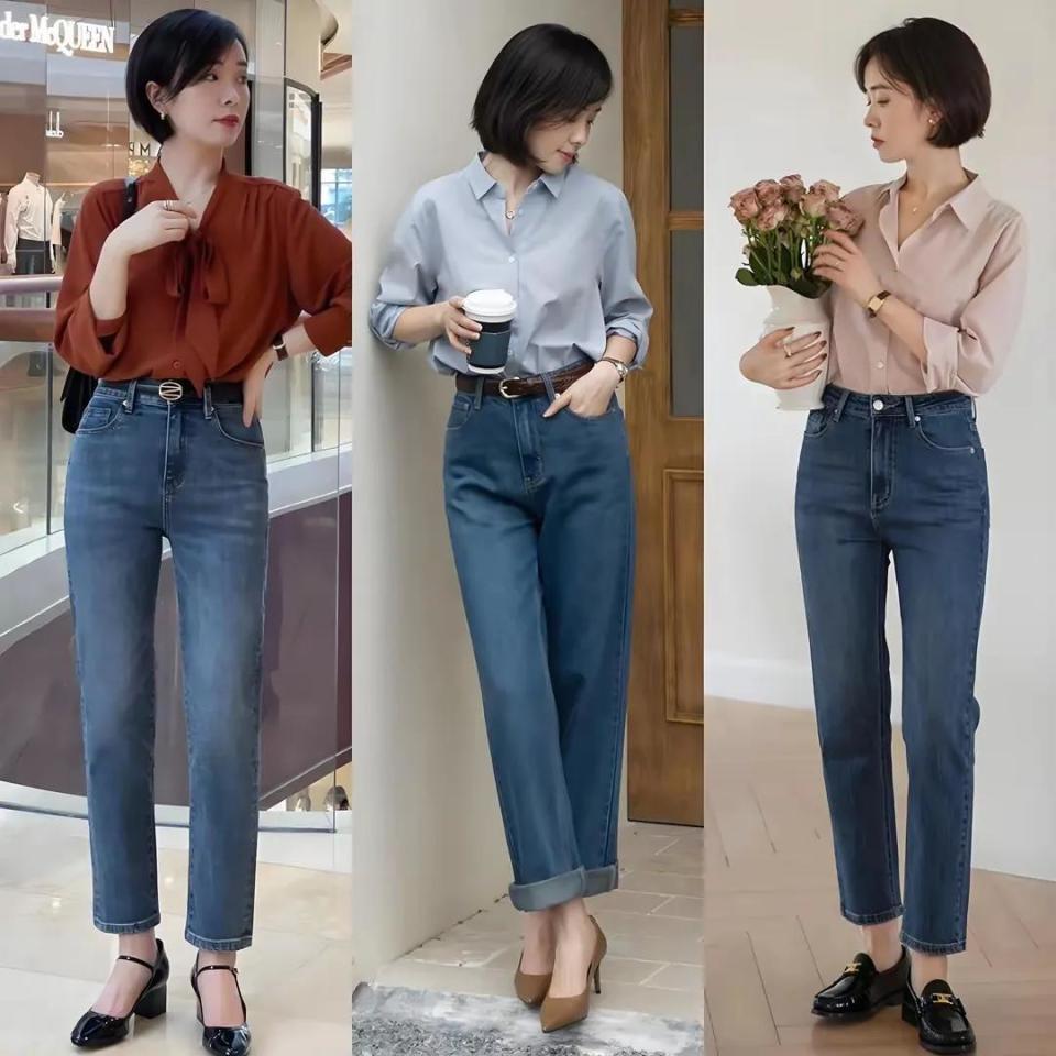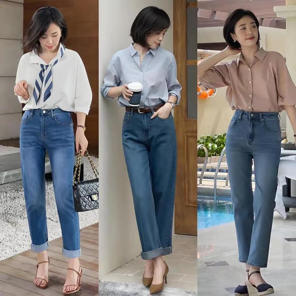 1米60以下的小个子女生,咱们可以学习下面这位博主的穿衣打扮,用最为经典的牛仔裤来搭配上不同颜色的衬衫,上衣脚上穿了一双浅口的皮质单鞋,乐福鞋,玛丽珍鞋,一定要把衬衫的衣角塞进裤子里面,再来一条腰带,就能使得小个子女生看起来更精致,穿衣打扮也不会压身高。